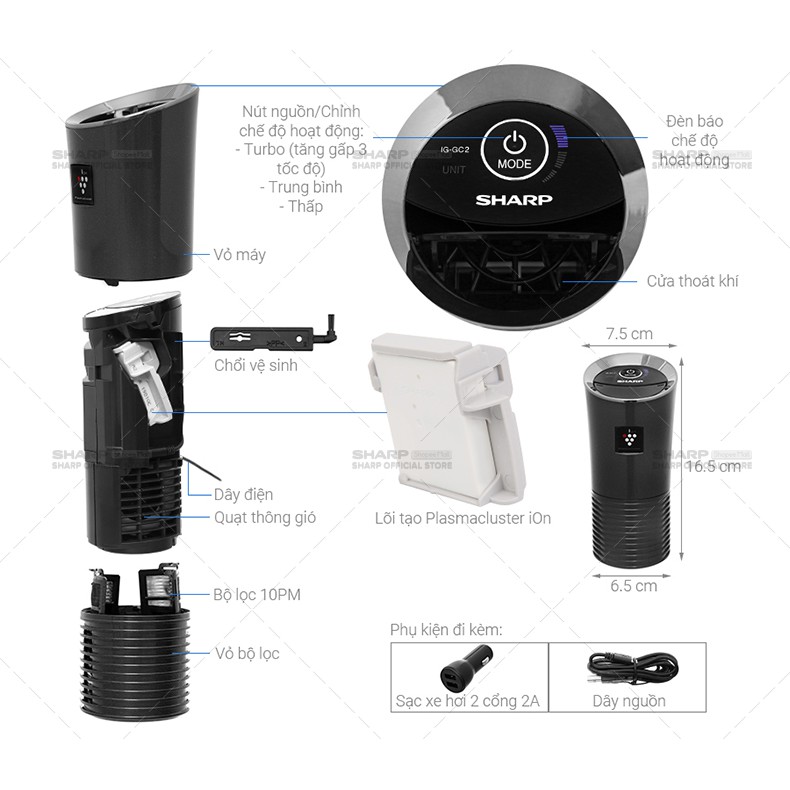 Thiết Bị Điện Gia Dụng > Thiết bị điện gia dụng nhỏ > Thiết bị xử lí không khí > Máy lọc không khí || [Mã ELMALL500 giảm 10% đơn từ 500K]Máy lọc không khí ôtô Sharp IG-GC2E-N/B Hàng Thái LanCòn hàng