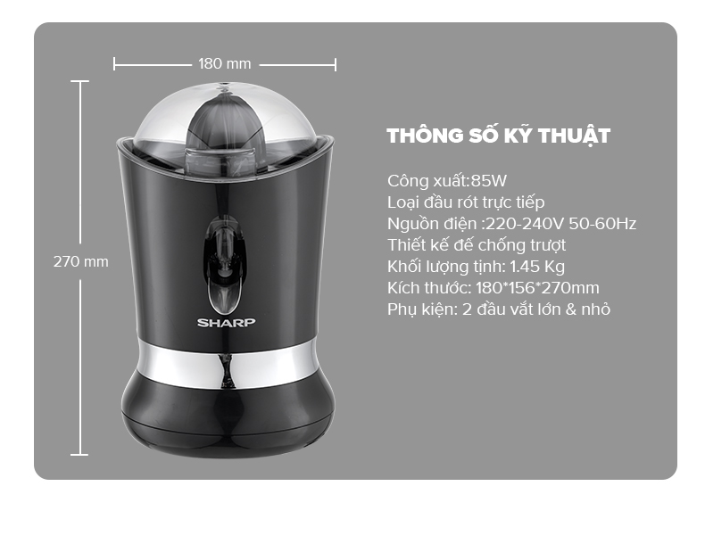 • Máy Vắt Cam Cao Cấp Sharp EJ-J850-BK• Máy vắt cam kiểu dáng gọn đẹp, hiện đại, dùng đẹp trong mọi không gian.