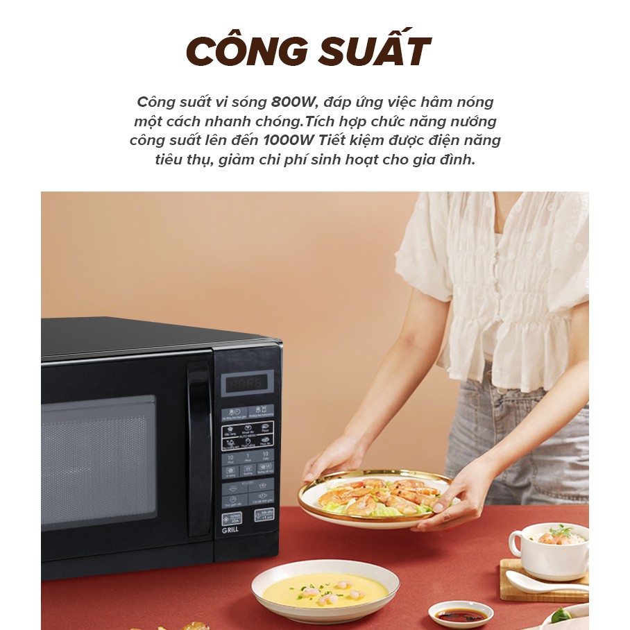 • Chức năng rã đông nhanh, thuận tiện. Chức năng nướng kết hợp.