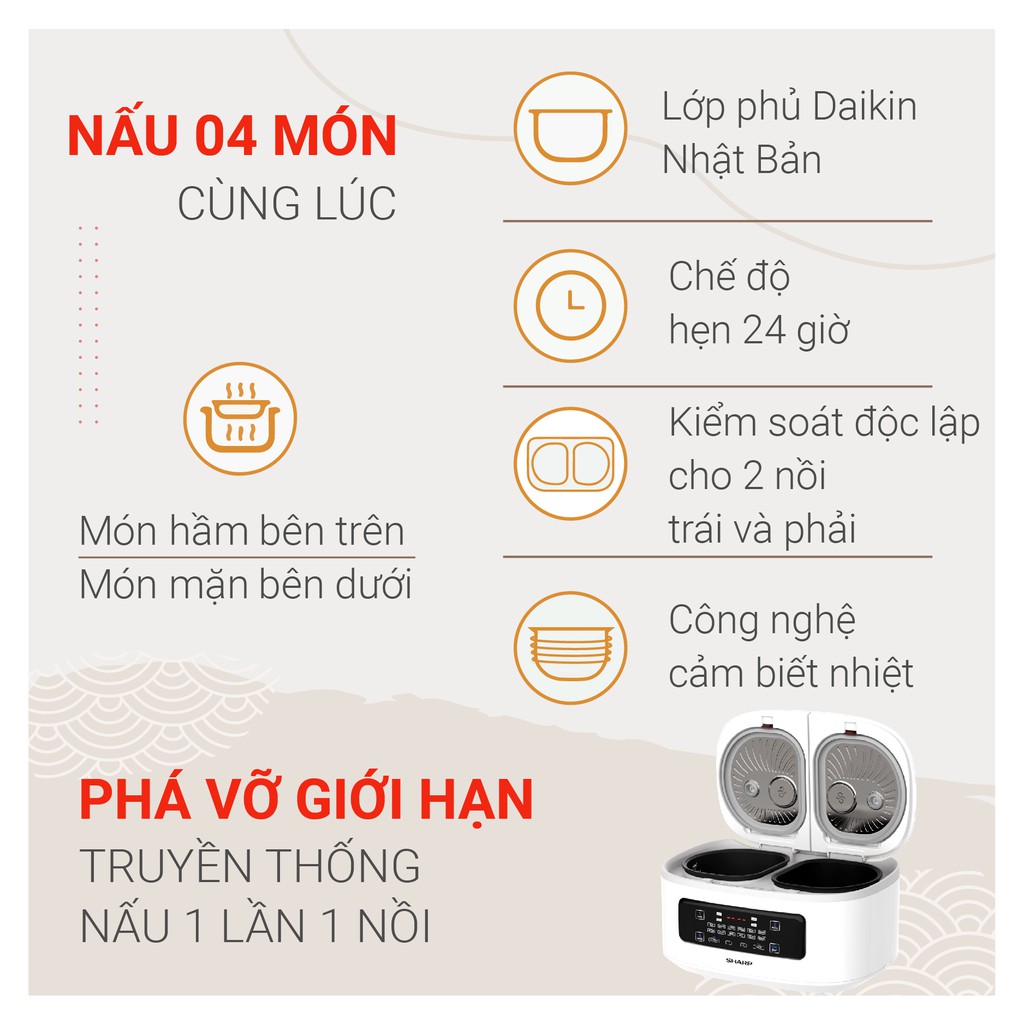 [Mã ELBAU10 giảm 10% đơn 500K]Nồi Cơm 2 Ngăn Đa Năng Sharp 1.8 lít KN-TC50VN-SL/WH