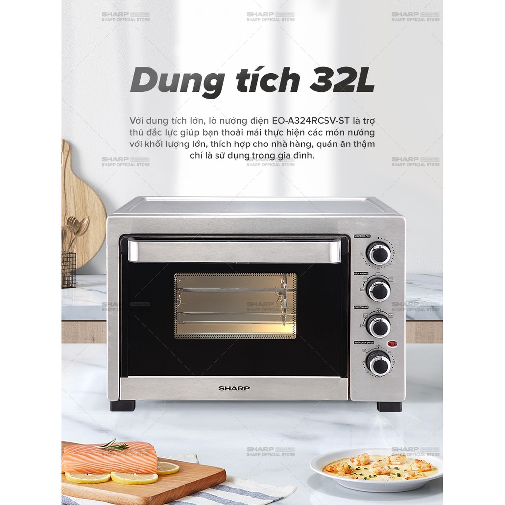 • Lò Nướng Điện Sharp EO-A324RCSV-ST 32L• Dung tích 32L
