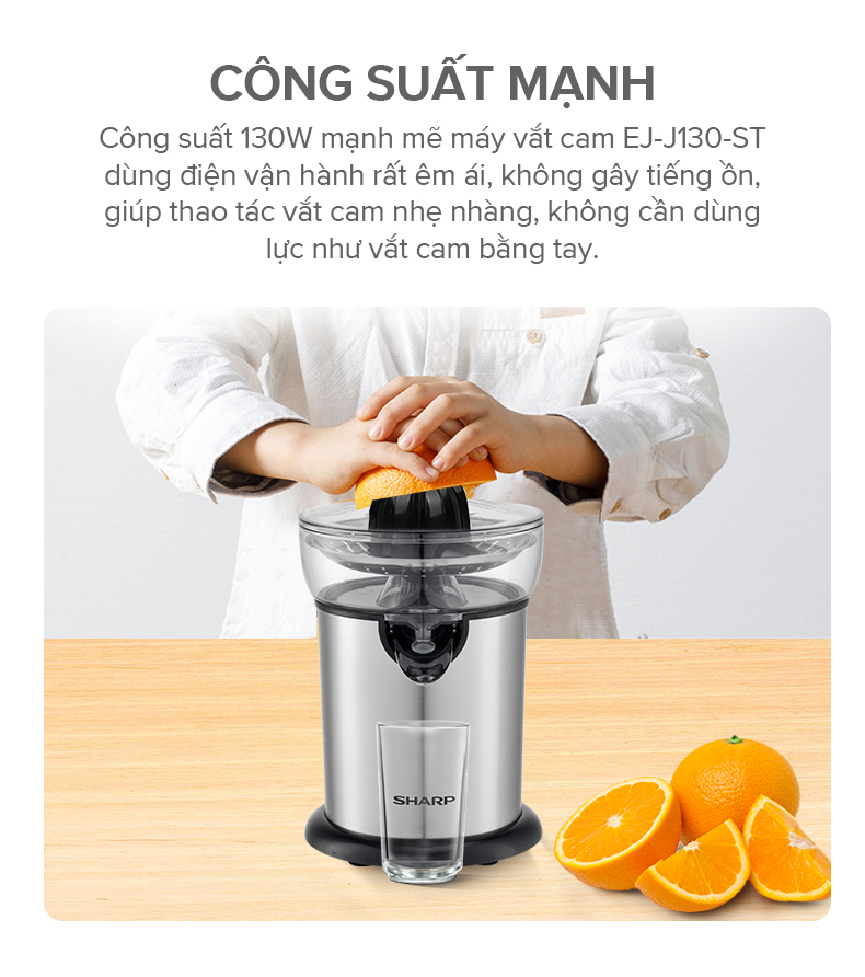 • Máy Vắt Cam Sharp EJ-J130-ST Đầu Rót Trực Tiếp• Máy vắt cam kiểu dáng gọn đẹp, hiện đại, dùng đẹp trong mọi không gian.