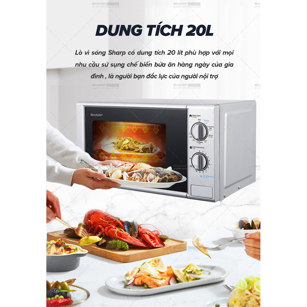 Lò vi sóng có nướng Sharp R-G228VN-SL - 20L - Hàng Chính HãngDung tích 20 lít