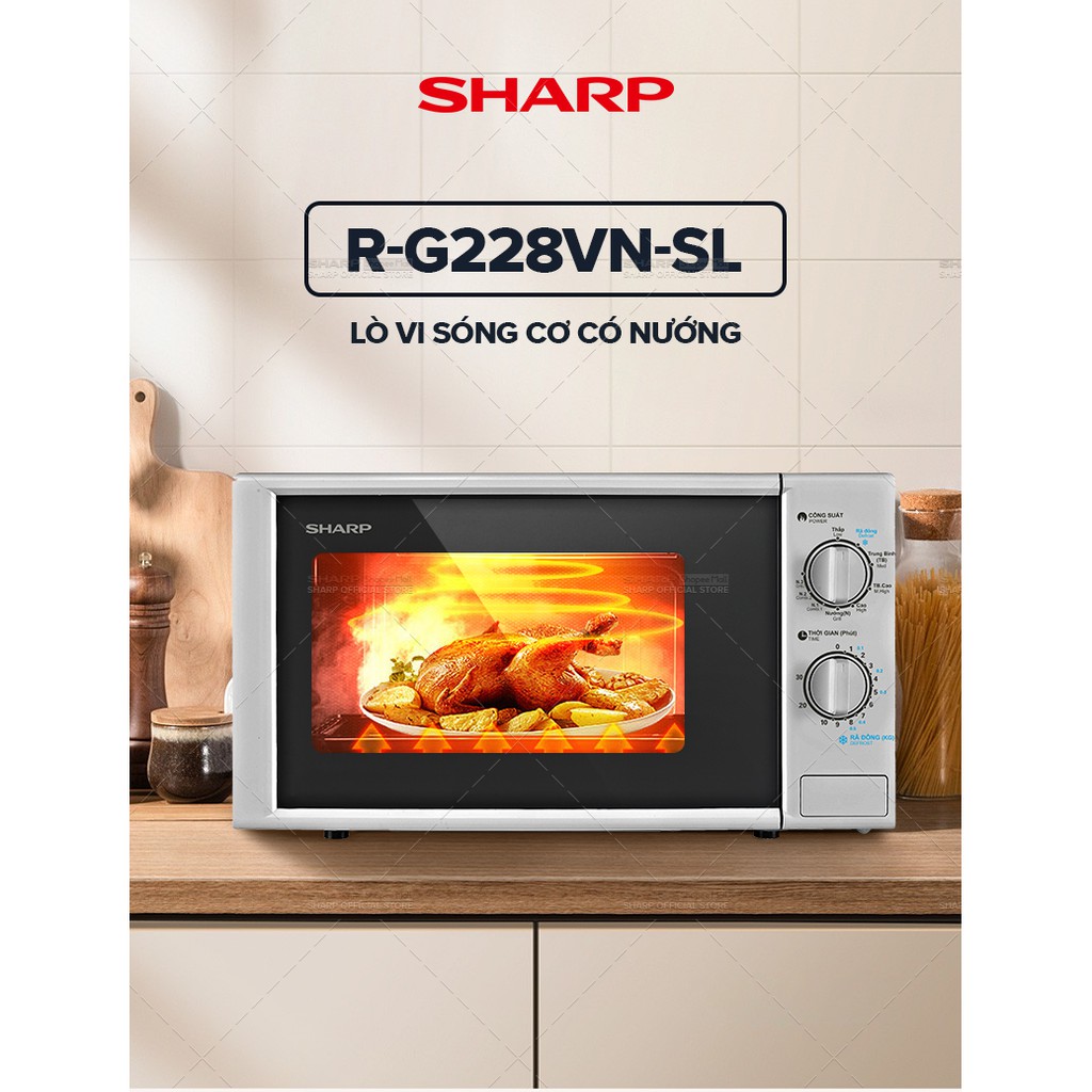 Giới thiệu [Mã ELBAU10 giảm 10% đơn 500K]Lò vi sóng có nướng Sharp R-G228VN-SL - 20L - Hàng Chính Hãng