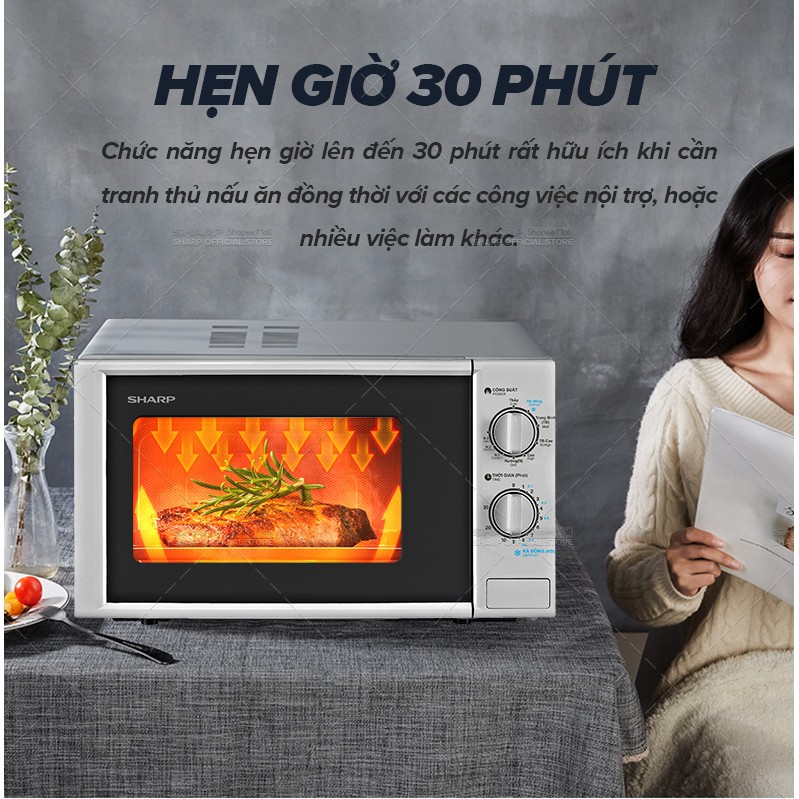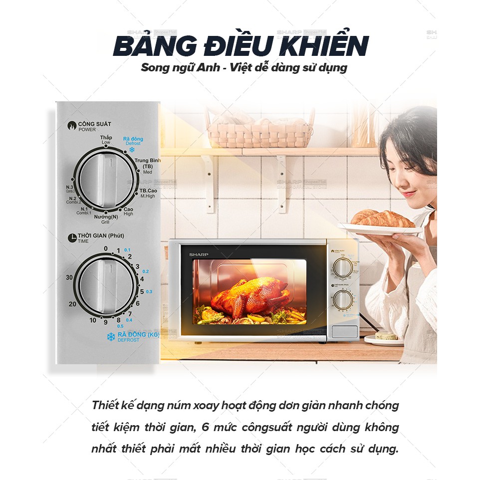 [Mã ELBAU10 giảm 10% đơn 500K]Lò vi sóng có nướng Sharp R-G228VN-SL - 20L - Hàng Chính Hãng