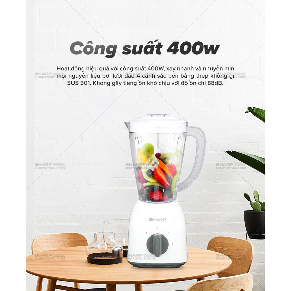 Máy Xay Sinh Tố Sharp EM-S154PV-WH 1.5L [Công suất: 400W, 2 Tốc Độ Xay] - Bảo Hành Chính Hãng 15 ThángDung tích: 1.5 L