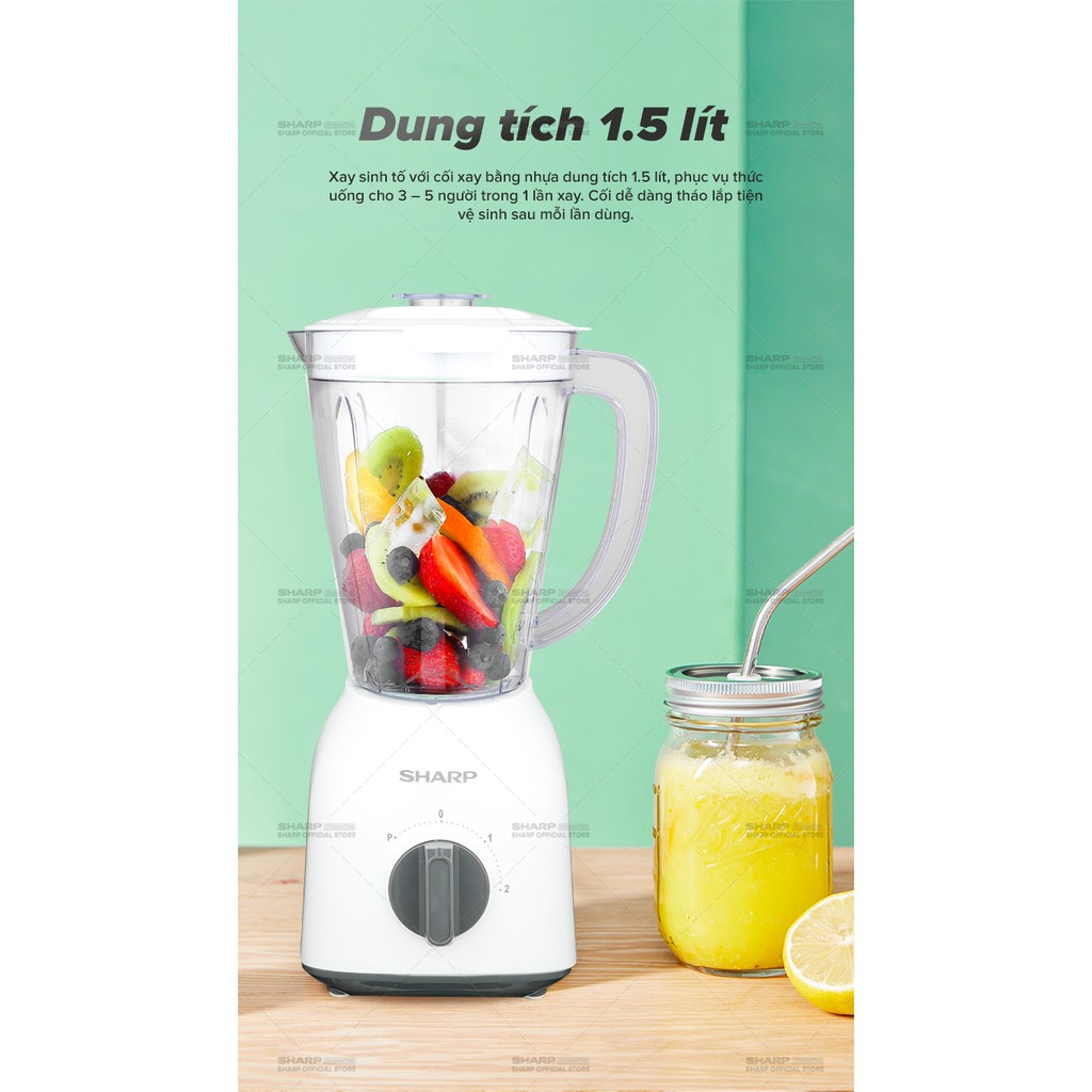 [Mã ELBAU10 giảm 10% đơn 500K] Máy Xay Sinh Tố Sharp EM-S154PV-WH 1.5L [Công suất: 400W, 2 Tốc Độ Xay] BH 12 Tháng