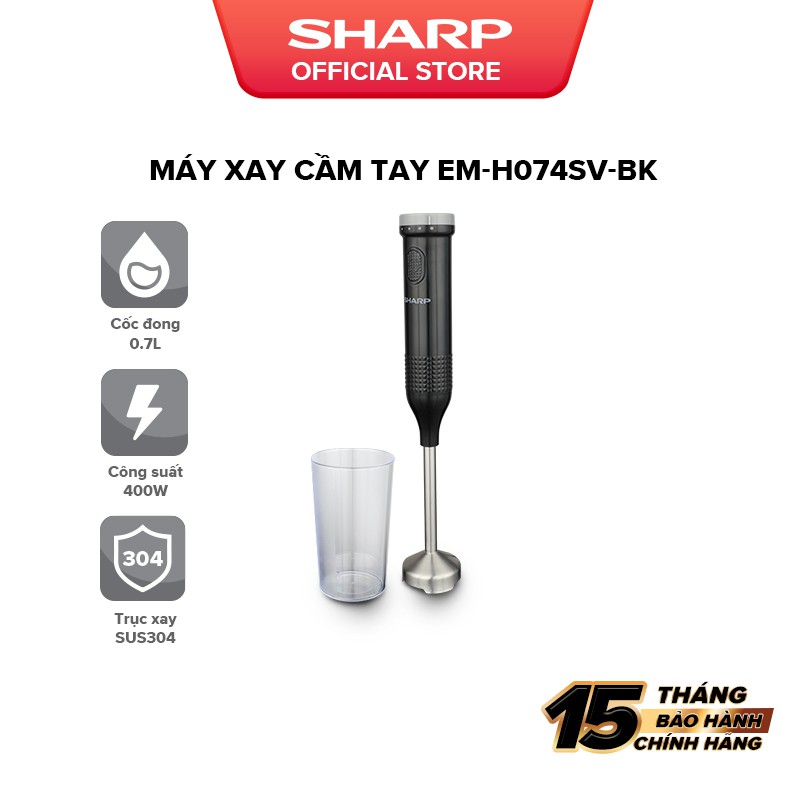 Máy Xay Sinh Tố Cầm Tay Sharp EM-H074SV-BK 0.7L [Xay Thực Phẩm Nóng, Công suất: 400W, Nhiều Tốc Độ Xay] - Bảo Hành Chính Hãng 15 ThángCông suất: 400W