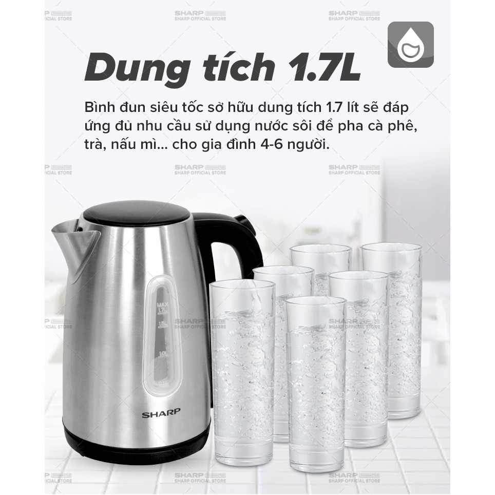 [Mã ELBAU10 giảm 10% đơn 500K]Bình Siêu Tốc Sharp EKJ-17VSS-ST [1850-2200W, Thang Đo Mực Nước 2 Bên] - BH 12 Tháng