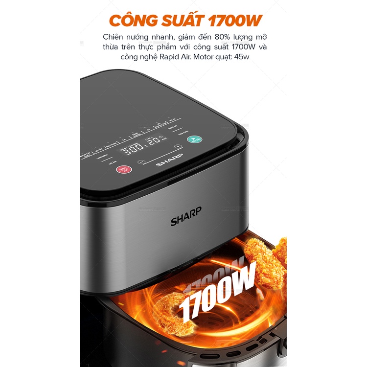 Giới thiệu [Mã ELBAU10 giảm 10% đơn 500K][New Model] Nồi Chiên Không Dầu Sharp KF-AF70EV-ST Chống Dính 7L [1700W]