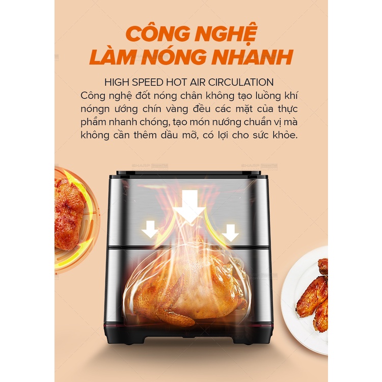 [Mã ELBAU10 giảm 10% đơn 500K][New Model] Nồi Chiên Không Dầu Sharp KF-AF70EV-ST Chống Dính 7L [1700W]