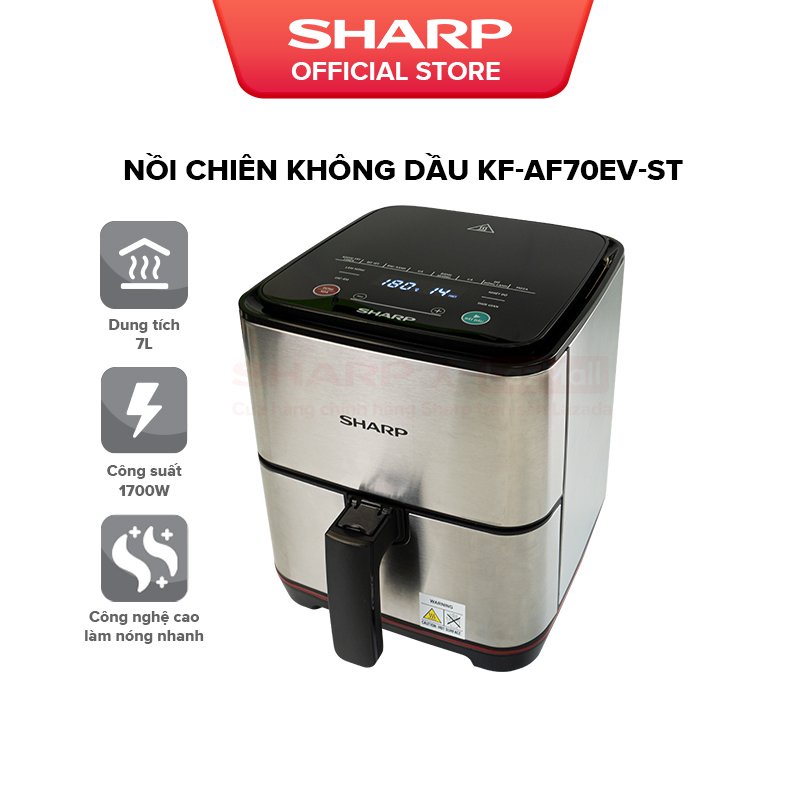 Thiết Bị Điện Gia Dụng > Đồ gia dụng nhà bếp > Nồi chiên không dầu || [Mã ELSHARP25 giảm 10% đơn 500K][New Model] Nồi Chiên Không Dầu Sharp KF-AF70EV-ST Chống Dính 7L [1700W]Còn hàng