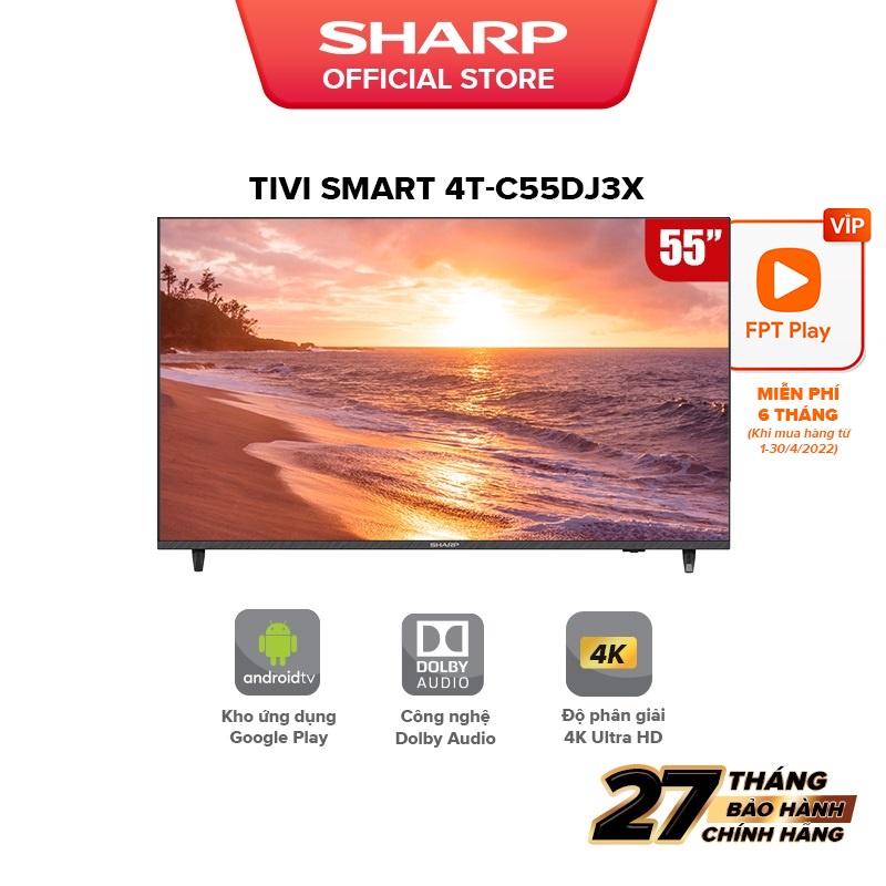 Thiết Bị Điện Gia Dụng > Tivi & Phụ kiện > Tivi || [Mã ELSHARP4N giảm 10% đơn từ 500K][New model] TV LED Sharp 4K 4T-C55DJ3X 55inch Android 10 & điều khiển giọng nóiCòn hàng