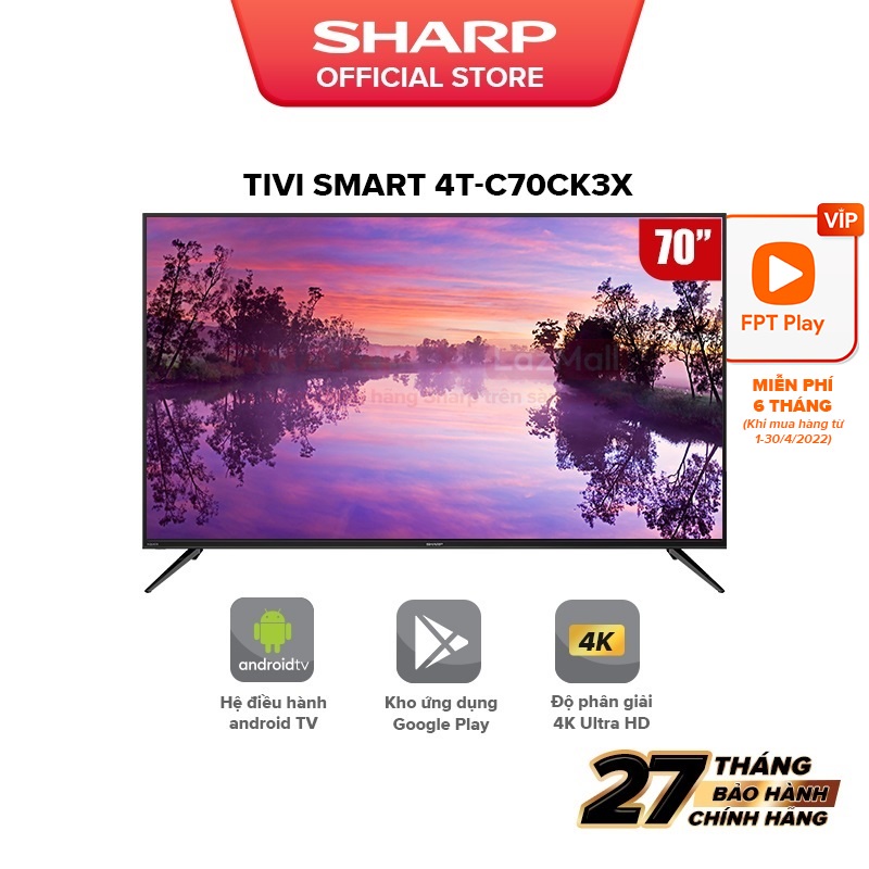 Thiết Bị Điện Gia Dụng > Tivi & Phụ kiện > Tivi || [Mã ELSHARP4N giảm 10% đơn từ 500K][New model] TV LED 4K Ultra HD 70inch Sharp 4T-C70CK3X SX Malaysia [Android 10.0]Còn hàng