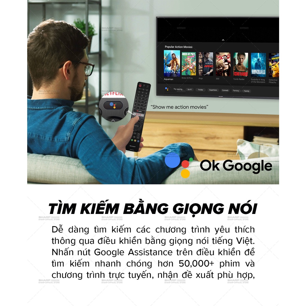 Thiết Bị Điện Gia Dụng > Tivi & Phụ kiện > Tivi || [Mã ELSHARP4N giảm 10% đơn từ 500K][New model] TV LED 4K 50inch Sharp 4T-C50DJ3X SX Thái Lan [Android 10, có Giọng Nói]Còn hàng
