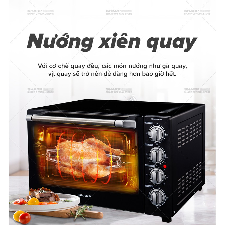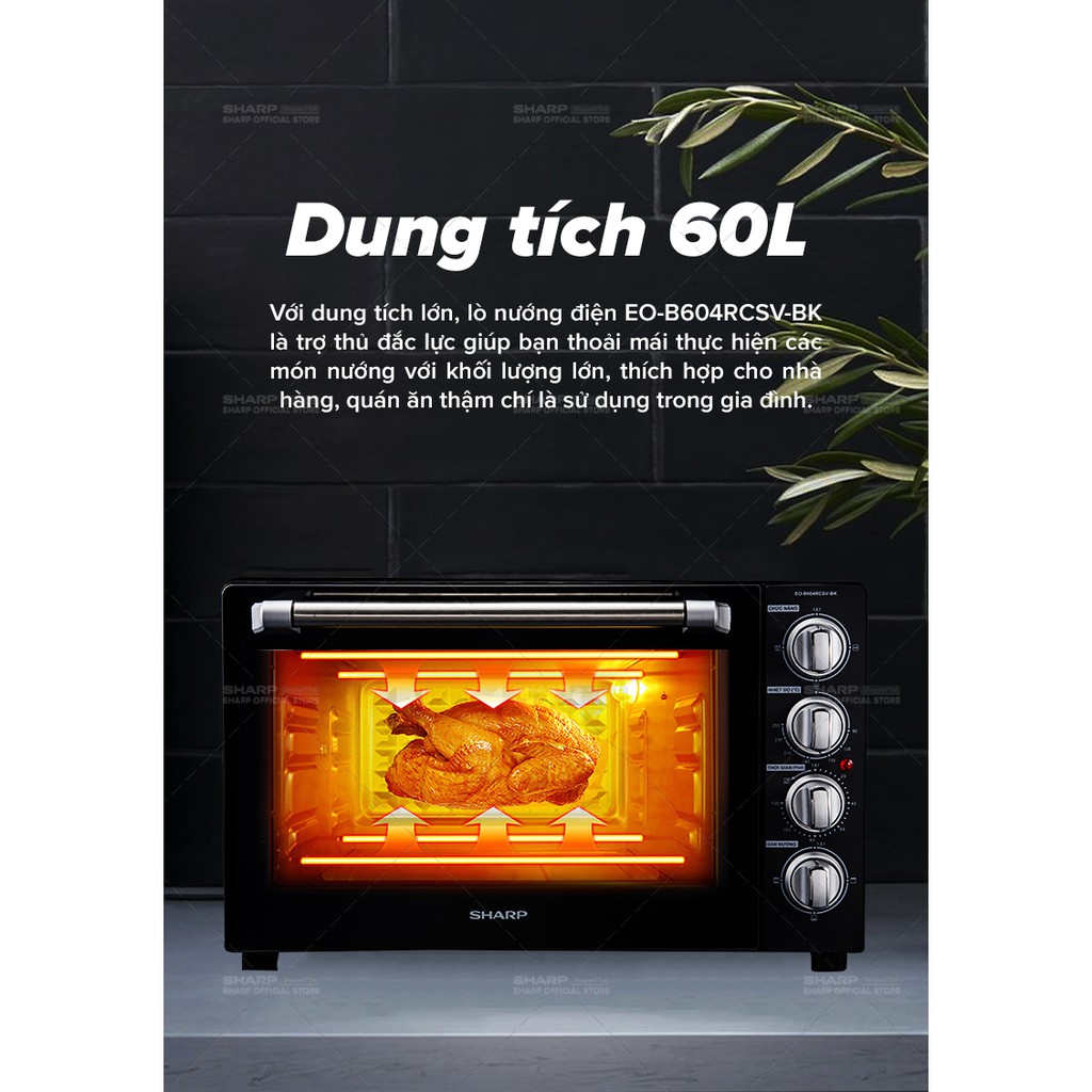 Giới thiệu [Mã ELSHARP4N giảm 10% đơn từ 500K]Lò Nướng Điện Sharp EO-B604RCSV-BK 60L Công Suất 2400W - Chính Hãng BH 12 Tháng