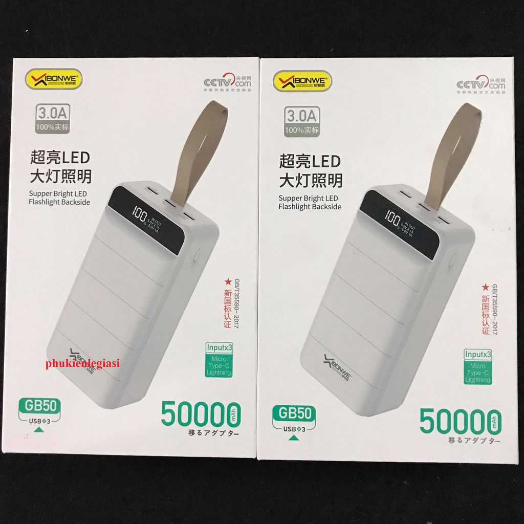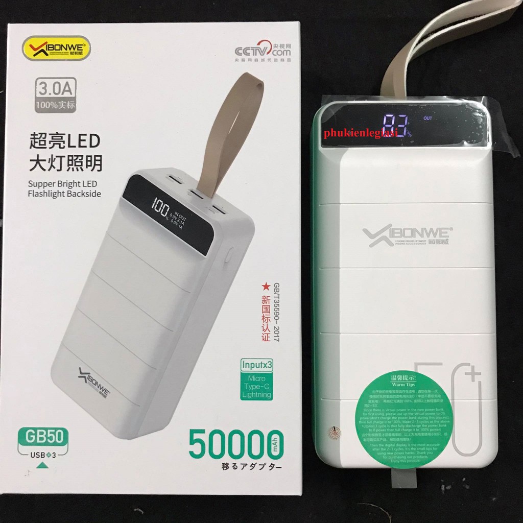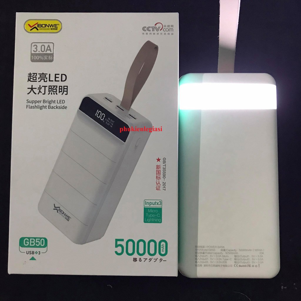 Điện Thoại & Phụ Kiện > Pin sạc dự phòng > >20000mAh || [Mã ELTECHZONE giảm 6% đơn 500K] Pin sạc dự phòng 50000Mah Ibonwe GB50 3 cổng usbCòn hàng