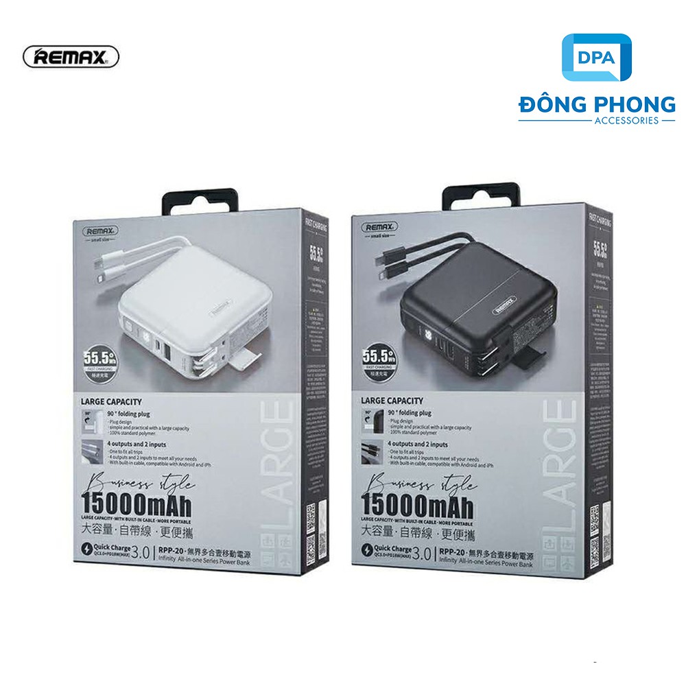 [Mã 44ELSALE2 giảm 7% đơn 300K] Pin Sạc Dự Phòng Remax RPP-20 15000mAh Chính Hãng Sạc Nhanh 18W Đa Năng