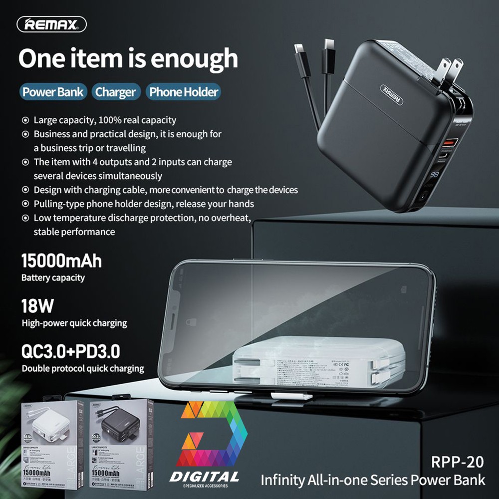 Giới thiệu [Mã 44ELSALE2 giảm 7% đơn 300K] Sạc Dự Phòng Remax RPP-20 15000mAh Chính Hãng Sạc Nhanh 18W Đa Năng