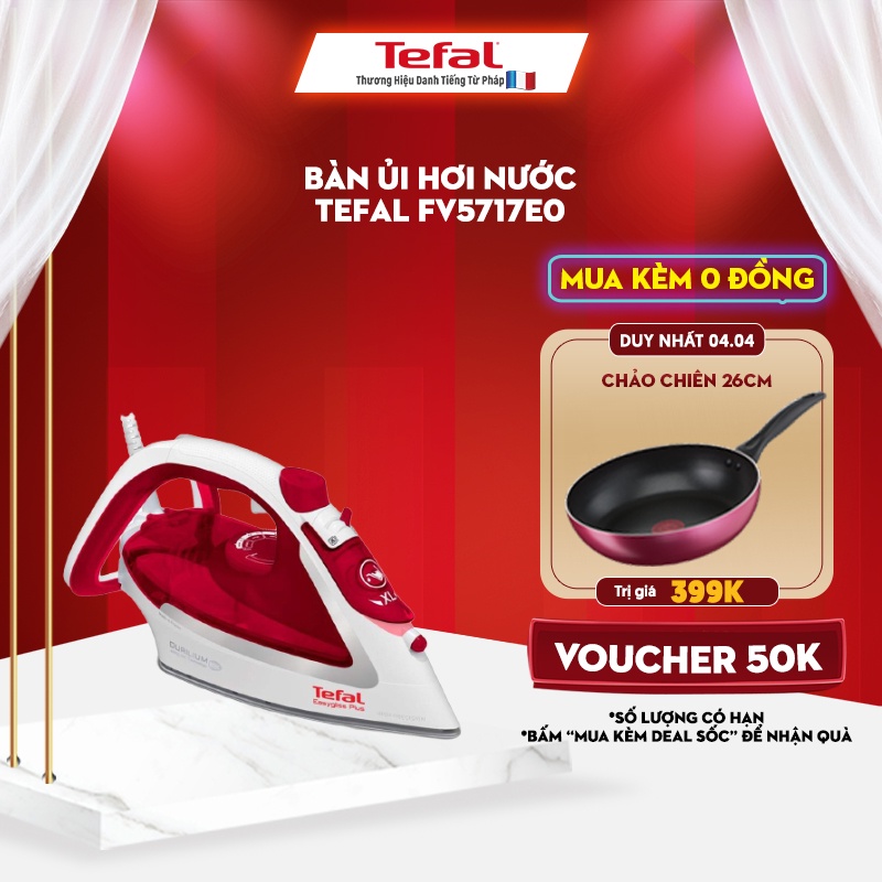 Thiết Bị Điện Gia Dụng > Thiết bị điện gia dụng nhỏ > Bàn là khô & Hơi nước || [Mã ELTEFALWL4 giảm 10% đơn 500K] Bàn ủi hơi nước Tefal - FV5717E0Còn hàng