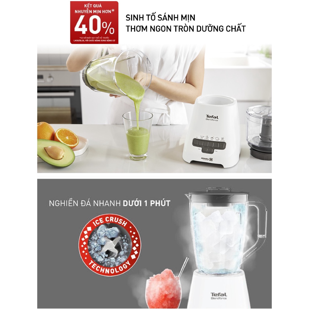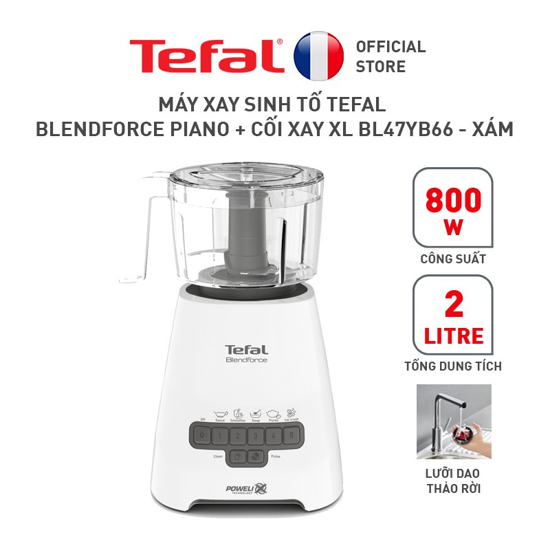 Giới thiệu [Mã ELTEFALWL5 giảm 10% đơn 500K] Máy xay sinh tố Tefal Blendforce Piano + cối xay XL BL47YB66 - Xám