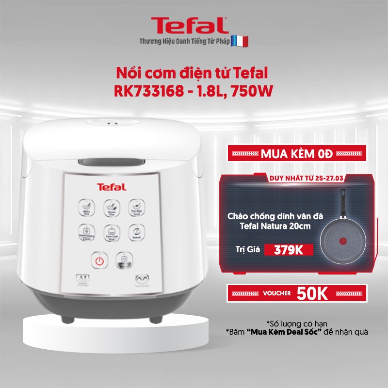 [Mã ELTEFALWL5 giảm 10% đơn 500K] Nồi cơm điện tử Tefal RK733168 - 1.8L, 750W