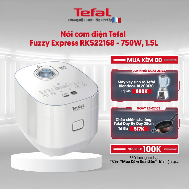 Giới thiệu [Mã ELTEFALWL5 giảm 10% đơn 500K] Nồi cơm điện Tefal Fuzzy Express RK522168 - 750W, 1.5L