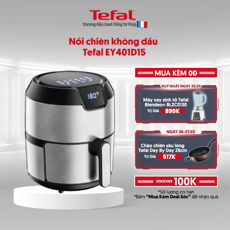 Thiết Bị Điện Gia Dụng > Đồ gia dụng nhà bếp > Nồi chiên ngập dầu || [Mã ELTF03 giảm 10% đơn 500K] Nồi chiên không dầu Tefal EY401D15Còn hàng