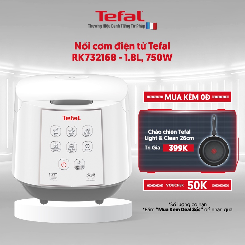 [Mã ELTEFALWL5 giảm 10% đơn 500K] Nồi cơm điện tử Tefal RK732168 - 1.8L, 750W