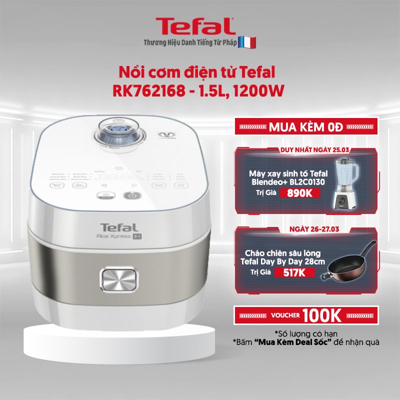 [Mã ELTEFALWL5 giảm 10% đơn 500K] Nồi cơm điện tử Tefal RK762168 - 1.5L, 1200W