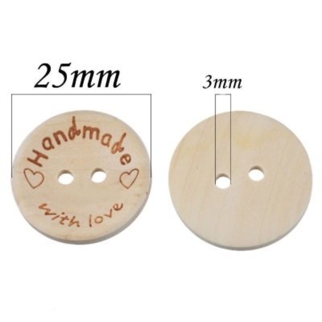 Cúc gỗ Handmade with love 2,5cm, thích hợp để gắn trên những sản phẩm tự làm như Khăn, Mũ, Đồ chơi.🐑 Ngôi nhà len sợi đầy sắc màu