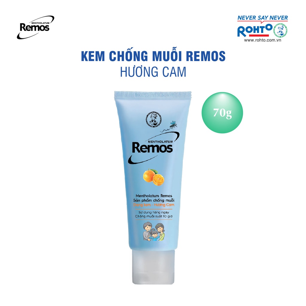 - Mentholatum Remos - Dạng kem, tuýp 70g- Hương Cam- Sản phẩm chống muỗi độc đáo, chứa Diethyltoluamide 15% đã được WHO và EPA chứng nhận hiệu quả và tính an toàn trong việc xua muỗi. Mentholatum Remos đạt hiệu quả xua muỗi suốt 10 giờ. Mentholatum Remos còn có Aloe Vera và Vitamin E giúp giữ ẩm và nuôi dưỡng da.
