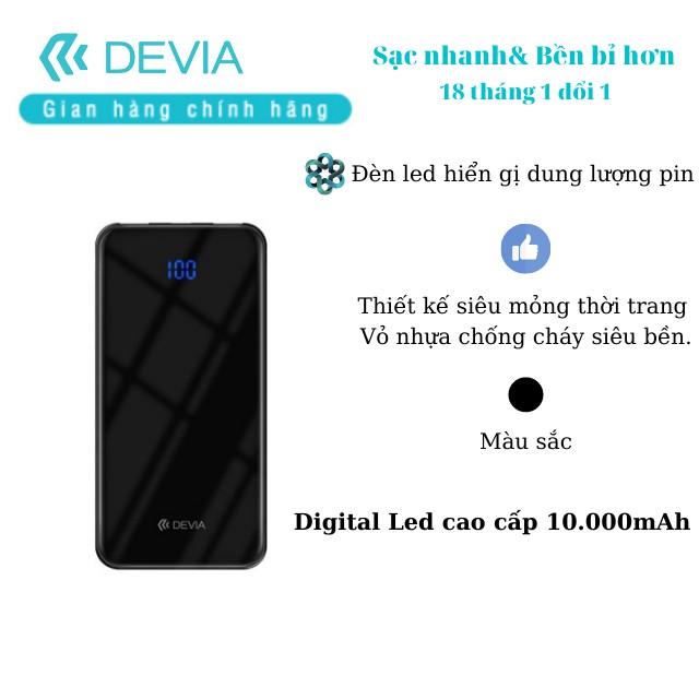 Tên sản phẩm : Pin dự phòng Devia Digital led cao cấp 10000mAh⚡ THÔNG SỐ SẢN PHẨM: