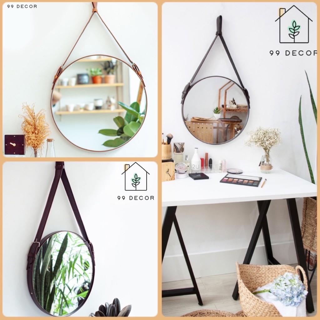 Nhà cửa & Đời sống > Trang trí nhà cửa > Gương || [MÃ GIẢM GIÁ 10%] Gương Tròn Dây Da Simili Treo Tường Cao Cấp D40-D50-D60pCòn hàng