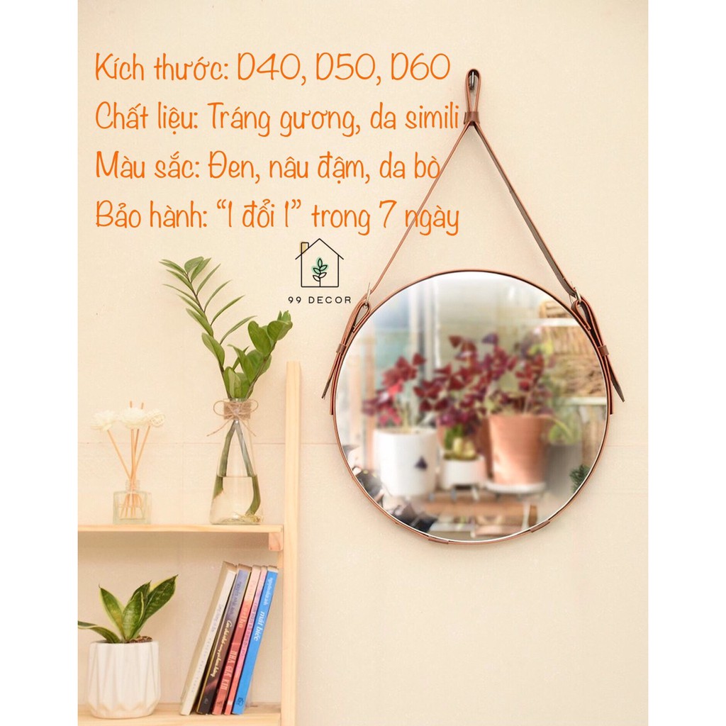 [MÃ GIẢM GIÁ 10%] Gương Tròn Dây Da Simili Treo Tường Cao Cấp D40-D50-D60p