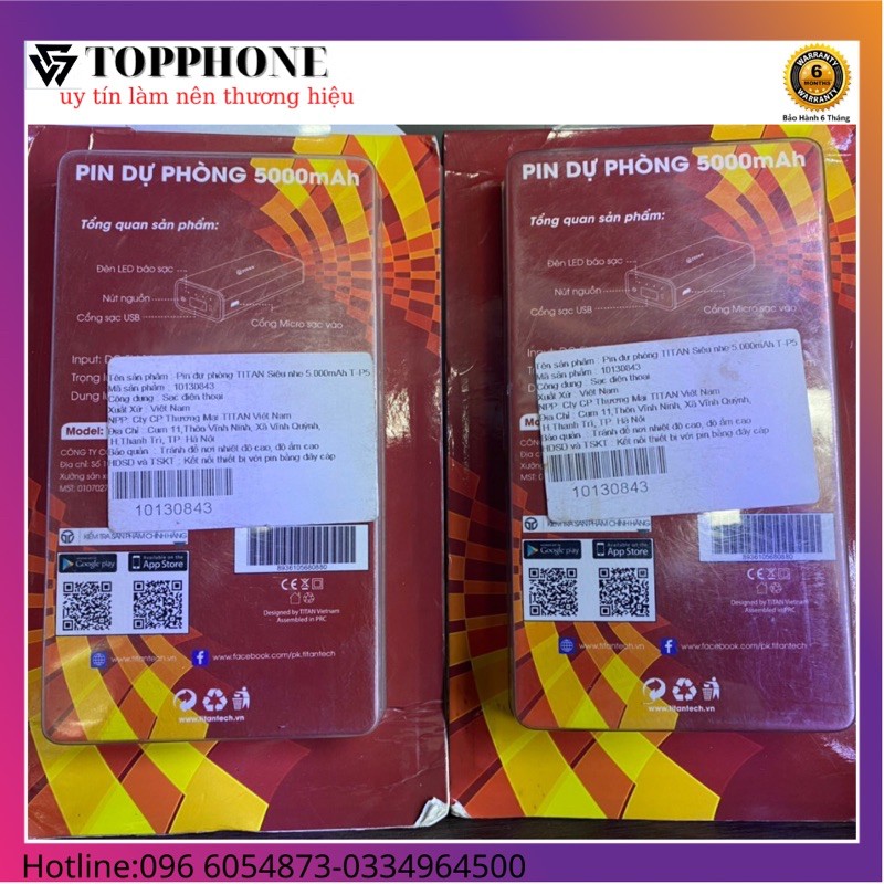 [MÃ GIẢM GIÁ PHUPKTP GIẢM 5% ,10k CHO ĐƠN 100K] bin sạc dự phòng TITAN 5000Mah kim loại cao cấp