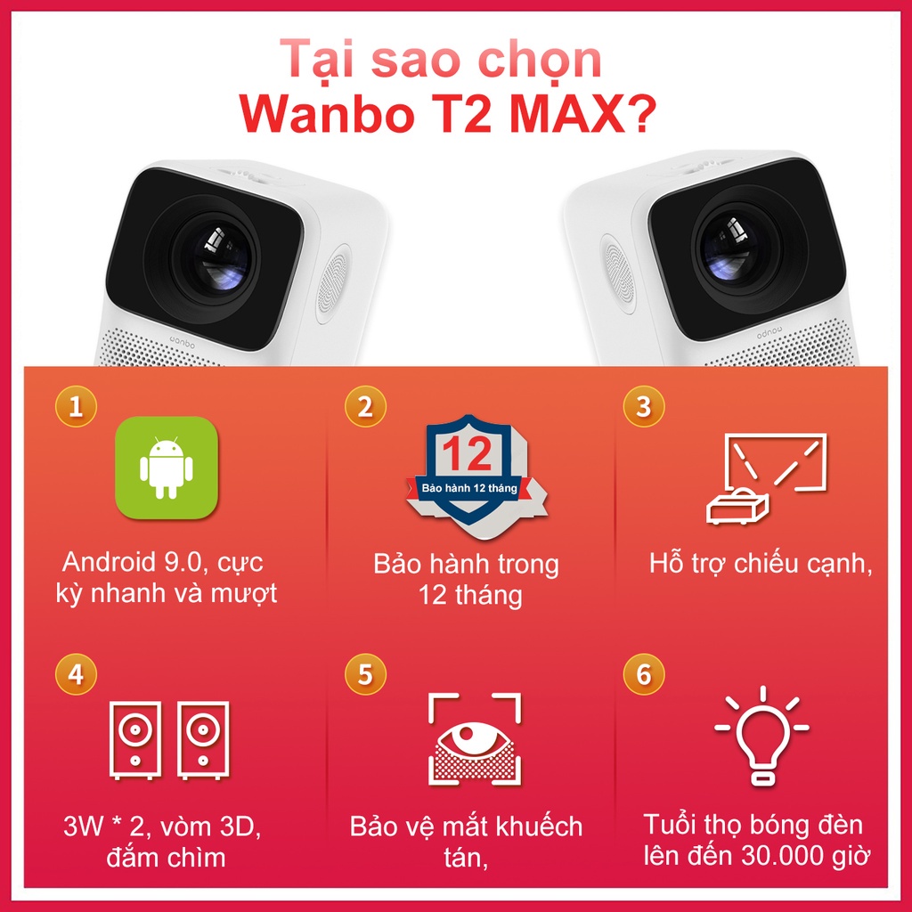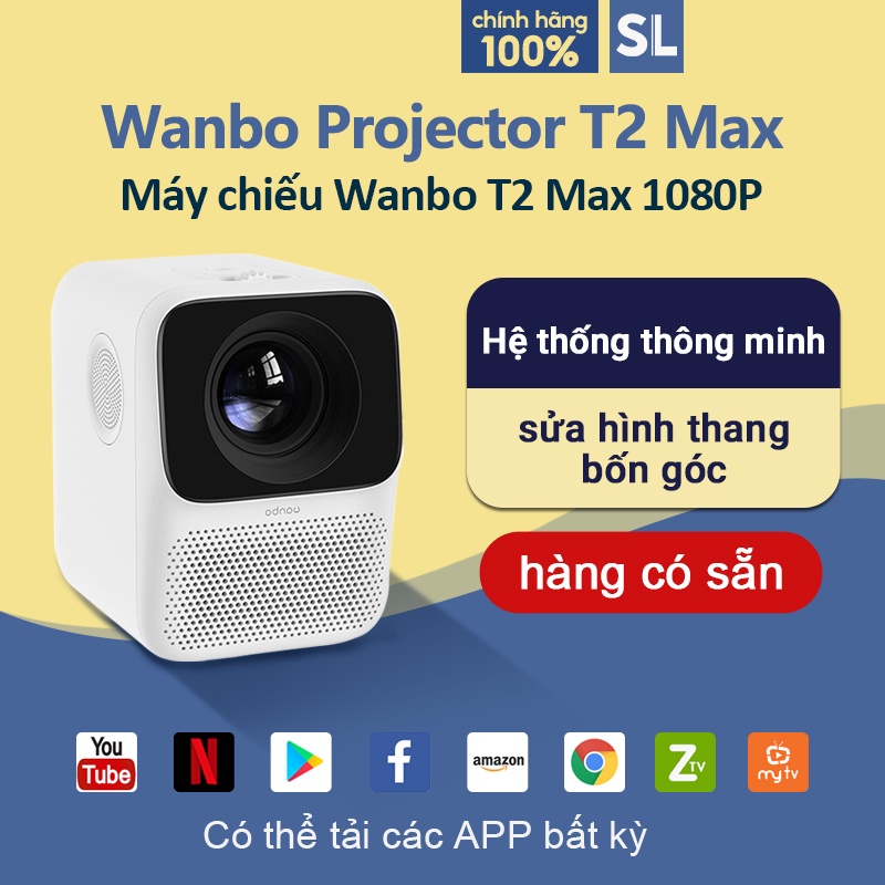 Máy Chiếu Thông Minh WANBO T2 Max 1080P xiaomi wanbo t2 max -kết nối không dây-Bản Quốc TếBiết trước:1.Tất cả các sản phẩm được đảm bảo là 100% xác thực 2.Máy chiếu Wanbo T2 Max (bản quốc tế) không bị hạn chế cài đặt các ứng dụng bị cấm tại thị trường Trung Quốc như: Youtube, Facebook, Netflix, Google Chrome,vv... và máy còn được tích hợp sẵn kho cài đặt ứng dụng trực tuyến, người dùng có thể dễ dàng tìm kiếm các ứng dụng 3.Máy chiếu Wanbo T2 Max (bản quốc tế) là một sản phẩm tuyệt vời để sử dụng ở Việt Nam, người sử dụng không cần mầy mò nghiên cứu và tìm kiếm để lọc ra các ứng dụng tương thích rồi cài đặt, thay vào đó chúng ta chỉ cần vào kho ứng dụng đánh từ khóa tìm kiếm ứng dụng mình cần và cài đặt chỉ trong vài phút, điều này giúp giảm thời gian và công sức cho chúng ta đi rất nhiều.mình cần (như: VTV Go, FPT Play, Zing TV,...)