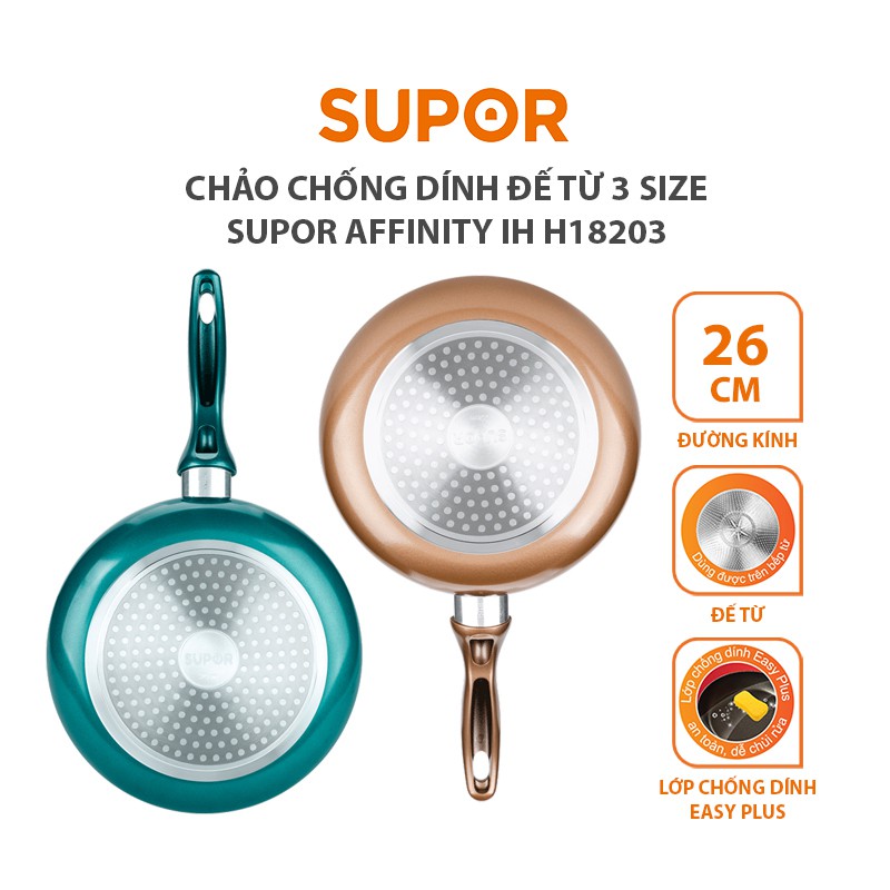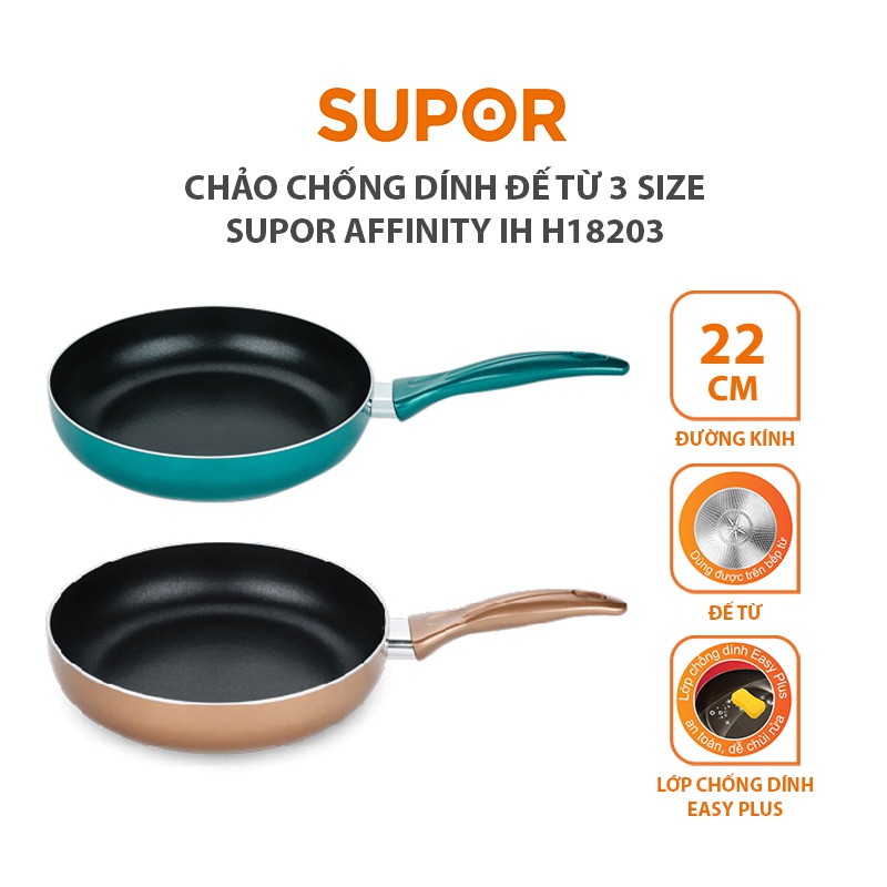 Giới thiệu [Mã HLSEB10 giảm 10% tối đa 100K đơn 300K] Chảo chống dính đế từ SUPOR Affinity IH H18203