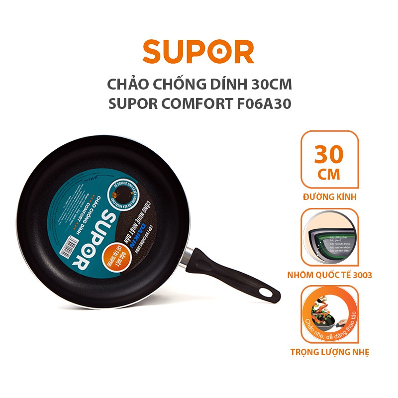 [Mã HLSEB10 giảm 10% tối đa 100K đơn 300K] Chảo chống dính Supor Comfort F06A30 30cm