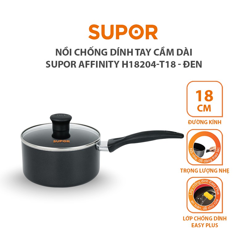 Nhà cửa & Đời sống > Dụng cụ nhà bếp > Nồi || [Mã HLSEB10 giảm 10% tối đa 100K đơn 300K] Nồi chống dính tay cầm dài SUPOR Affinity H18204-T18 18 cmCòn hàng