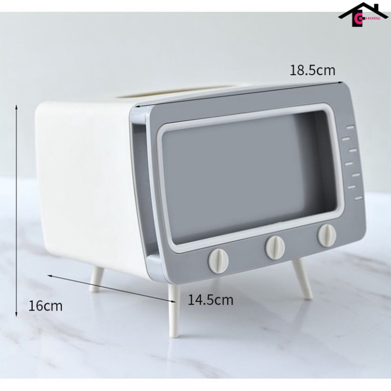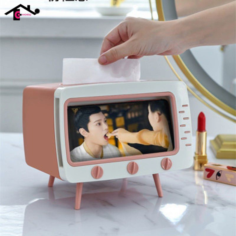 - Khay đựng giấy ăn ti vi để bàn, tích hợp cùng giá đỡ điện thoại giúp bạn thoải mái vừa xem phim vừa rảnh tay làm những công việc mình ưa thích