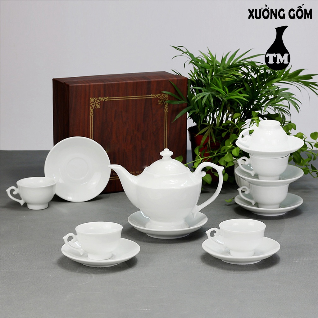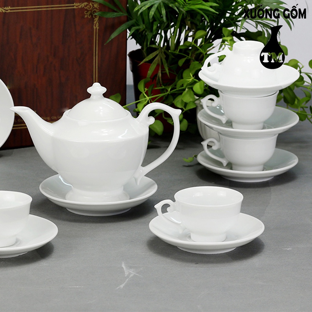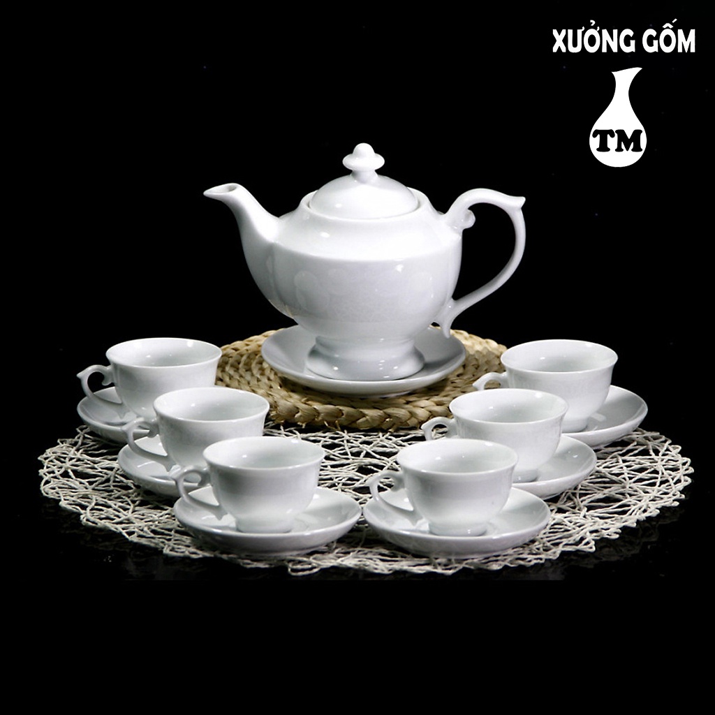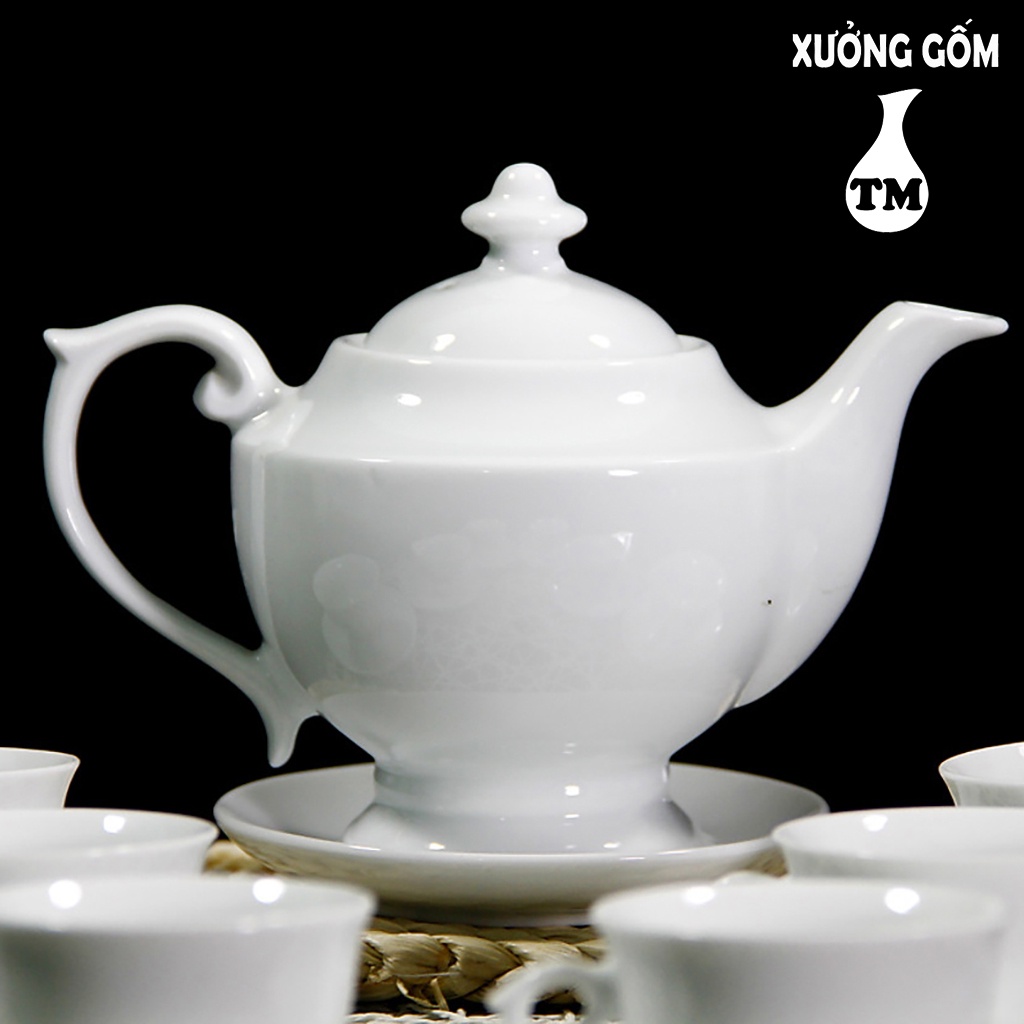 Bộ Ấm Chén Men Trắng Dáng Đèn Thần Xưởng Gốm TM Bát Tràng (bộ bình uống trà, bình trà)
