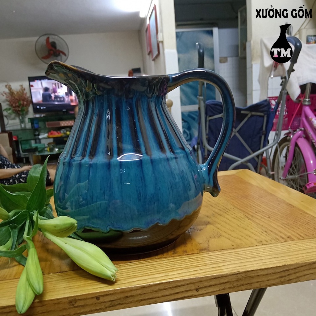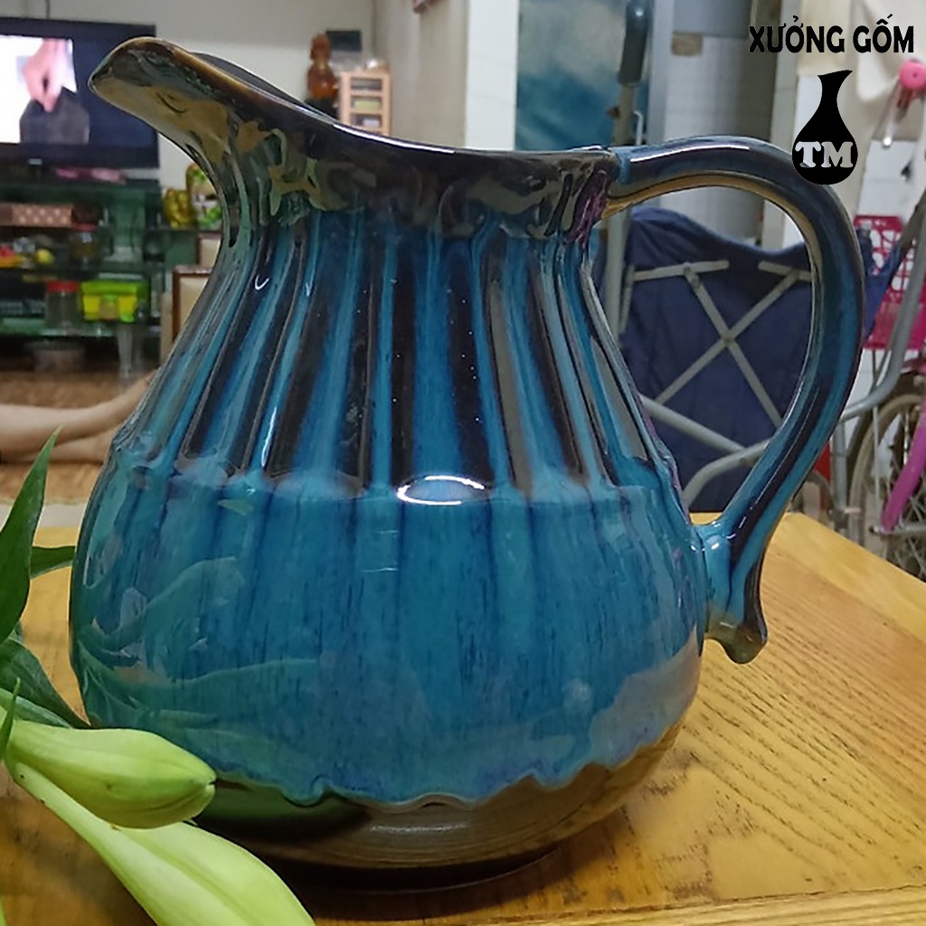 Nhà cửa & Đời sống > Trang trí nhà cửa > Bình trang trí || [Mã BMLTA50 giảm 10% đơn 99K] Lọ cắm hoa dáng bình sữa đáy phệ men xanh hỏa biến Xưởng Gốm TM Bát TràngCòn hàng