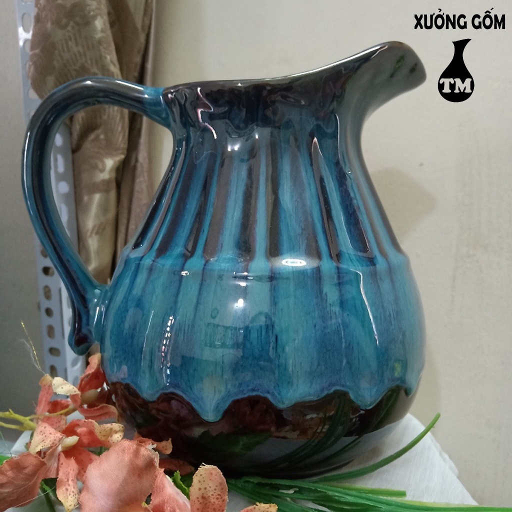 Giới thiệu [Mã BMBAU50 giảm 7% tối đa 50K đơn 99K] Lọ cắm hoa dáng bình sữa đáy phệ men xanh hỏa biến Xưởng Gốm TM Bát Tràng