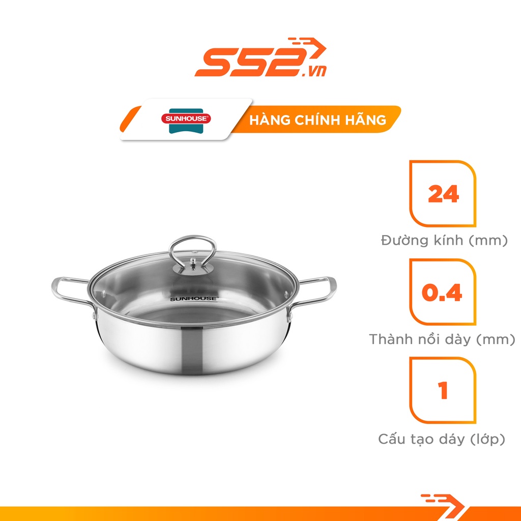 Nhà cửa & Đời sống > Dụng cụ nhà bếp > Nồi || [Mã INCU20 giảm 20K đơn 150K] Nồi Lẩu Inox 1 Đáy Sunhouse 24cm SHL24 - Hàng Chính HãngCòn hàng