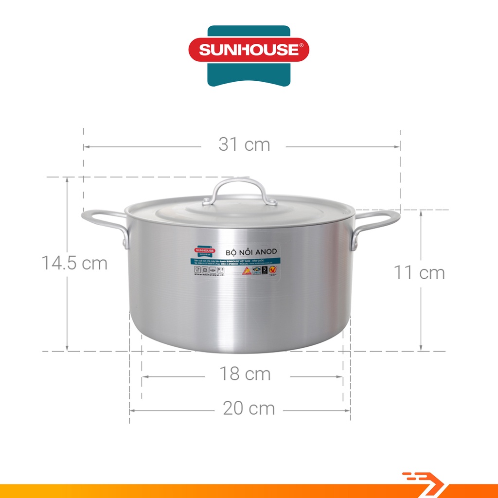Nồi Lẻ Anod Sunhouse 20cm SH6542-20 - Hàng Chính HãngTHÔNG SỐ KỸ THUẬT: