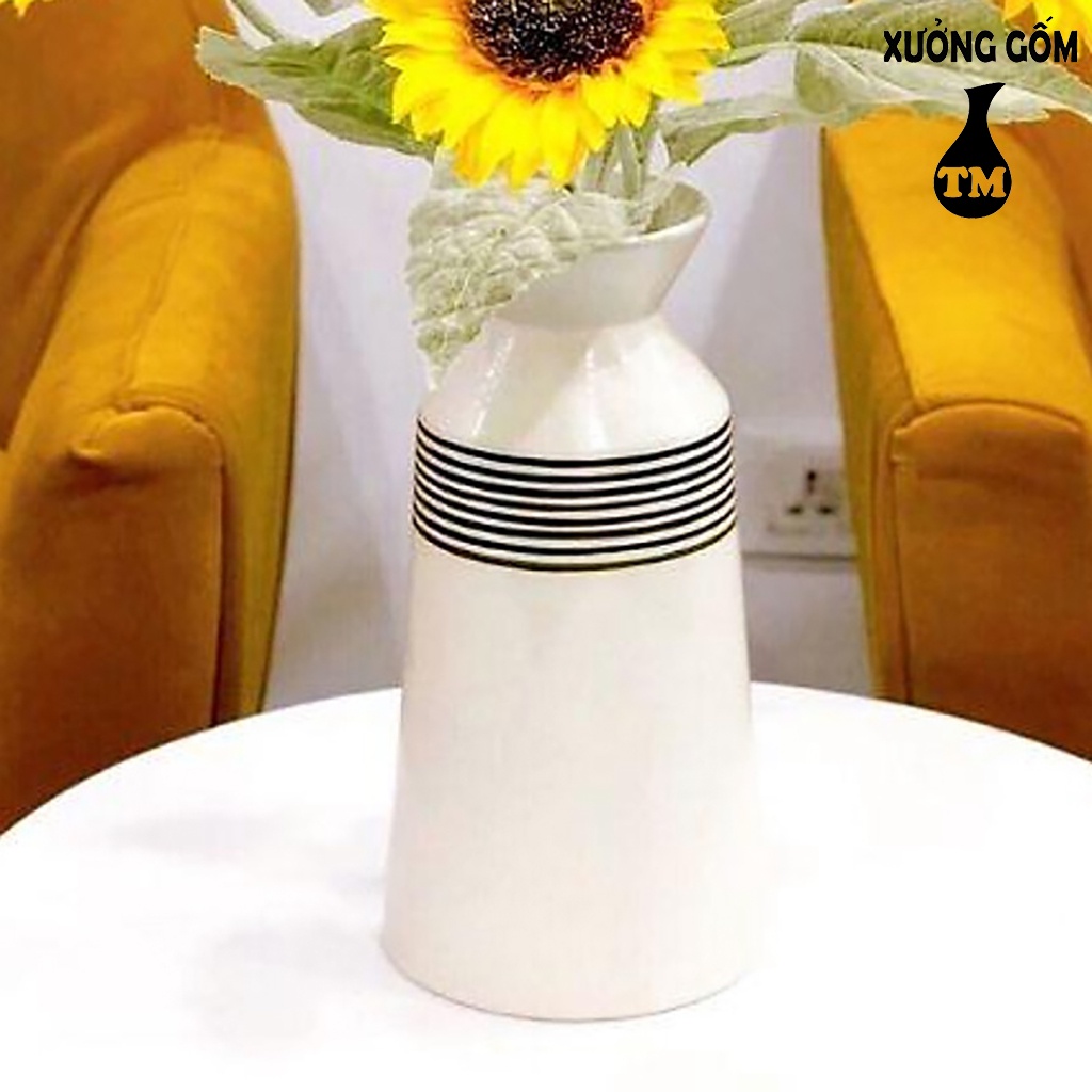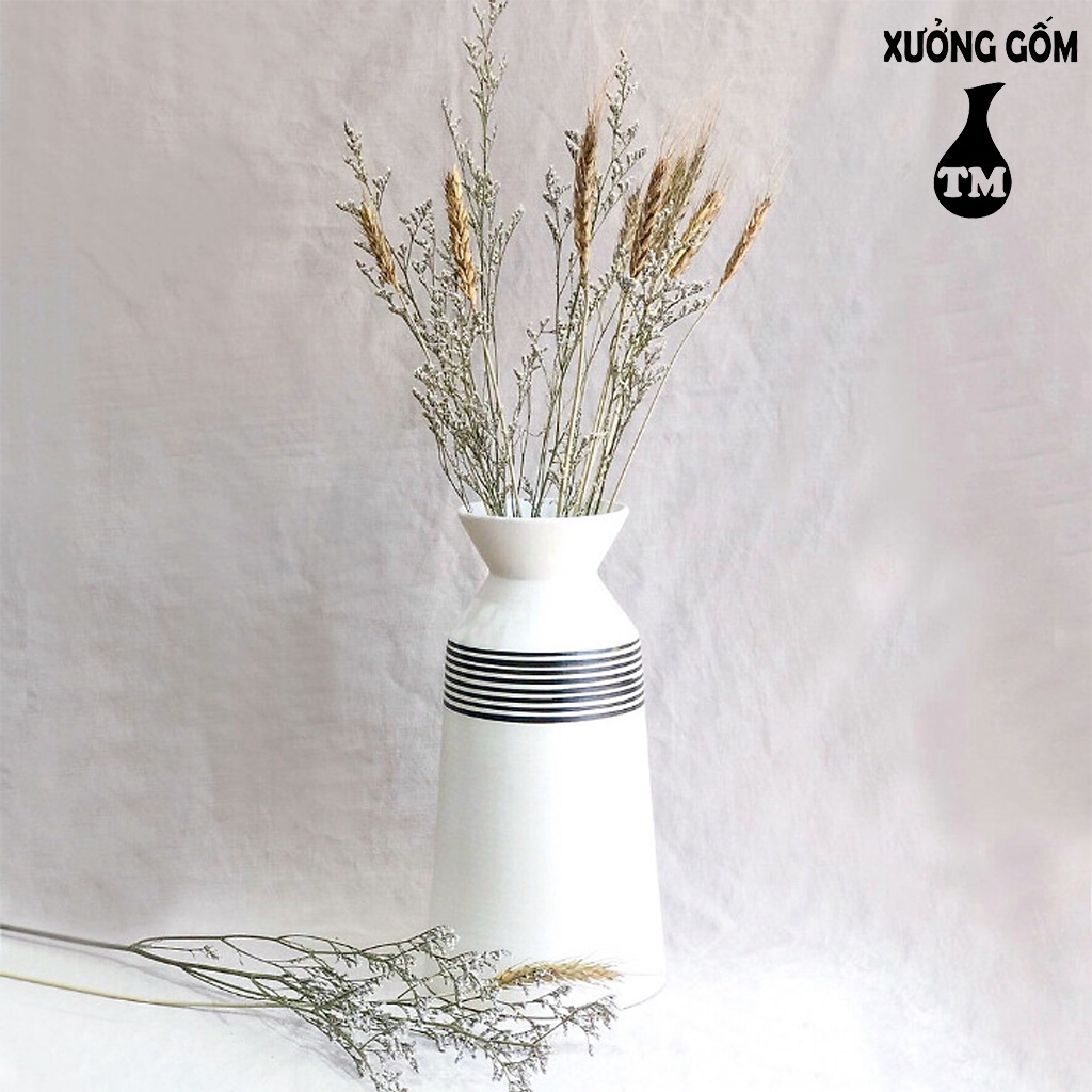 [Mã BMBAU50 giảm 7% tối đa 50K đơn 99K] Bình cắm hoa Xưởng Gốm TM Bát Tràng - Men mát kẻ đen H22 - Gốm Sứ Cao Cấp