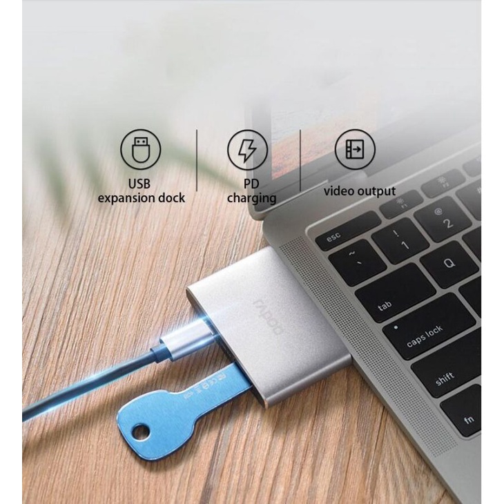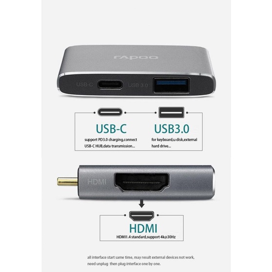 📍 Bộ chia (Hub) Cáp chuyển USB Type-C Rapoo XD20M📌 Chuẩn giao tiếp: USB Type-C, USB Type-A 3.0, HDMI (hỗ trợ Video 4K/30Hz, 1080P/60Hz.)