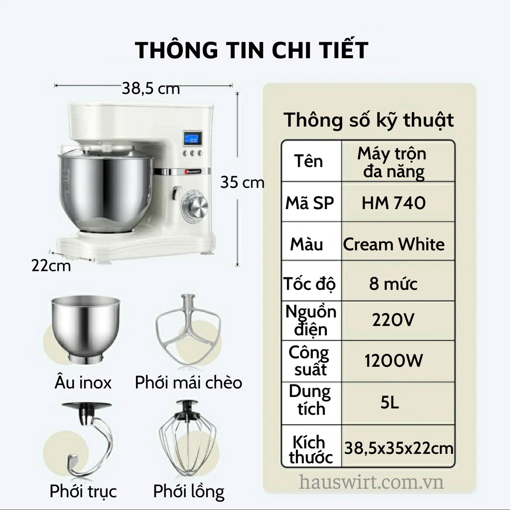 Thông số kỹ thuật Máy Trộn Bột Hauswirt HM740 điện tử Âu 5L