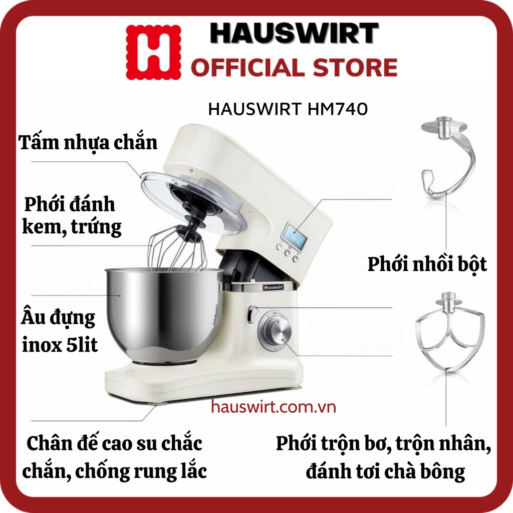 Giới thiệu [Mã ELHADEV giảm 4% đơn 300K] Máy nhồi bột đánh kem trứng HAUSWIRT HM740 bản tiếng Anh 2021